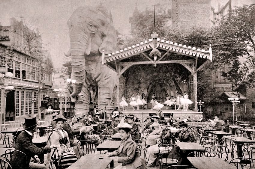 Okay, not a real elephant, but the garden was dominated by a gigantic plaster one. Perhaps you noticed this in the Baz Luhrmann’s 2001 movie on the cabaret. And, just like in the movie, the inside of the elephant was actually used. It had a private club where men could pay 1 franc to view a belly dance show. Apparently it also held some of the dressing rooms, but I doubt these were anything like the boudoir shown in the movie.