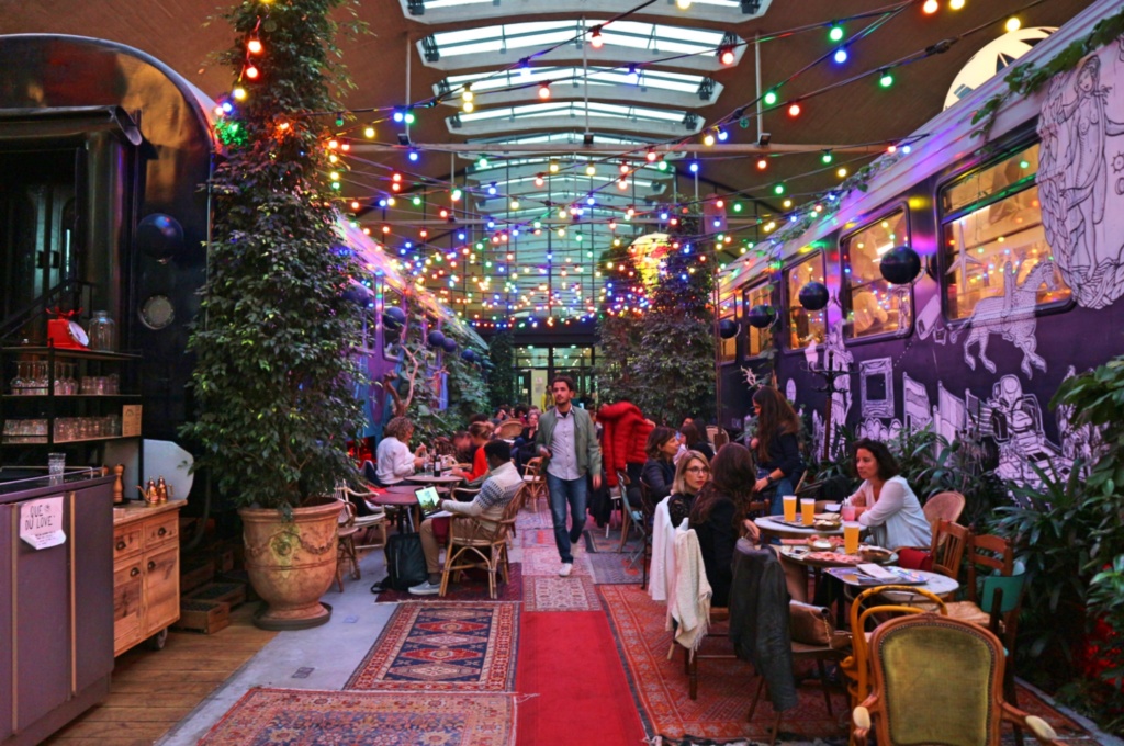 It might be the largest restaurant in Europe, which could seem hardly intimate and romantic, nevertheless, the Big Mamma Group’s very big project at the co-working Station F is whimsical, delicious and perfectly embodies the relaxed-cool of new Paris. Meaning “happiness” in Italian, La Felicità delights clients with its various sections: the sleek bar where you can get refreshing spritzes and cocktails, the light meal area under fairy-lights, the livelier outdoor terrace where you can dig into an authentic Neapolitan pizza, the colorful lounge area between the trains, which is my ideal spot for a tete-à-tete with a new chéri/e. No matter what ambiance you’re looking for, you can find your bonheur here, just come early to avoid waiting in line!