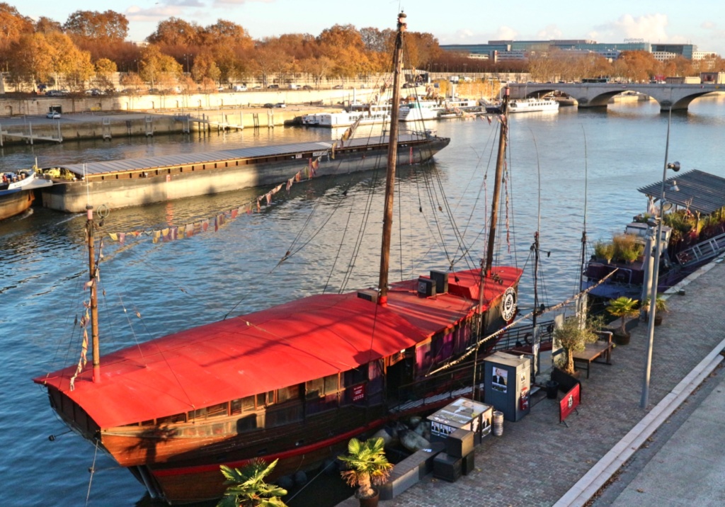 While there are a number of bars along this stretch of the quai (which are especially hopping in summer), none stand out as much as La Dame de Canton. The only “tall-ship” like vessel in Paris, the boat is a Chinese junk built at the shipyard of Canton at the end of the 1970s by two Frenchmen and using traditional Chinese boat-building methods. After sailing to virtually all four corners of the world, the boat been docked in Paris since 1995. Today it’s a bar, restaurant and concert venue — a definite unique place for a date!