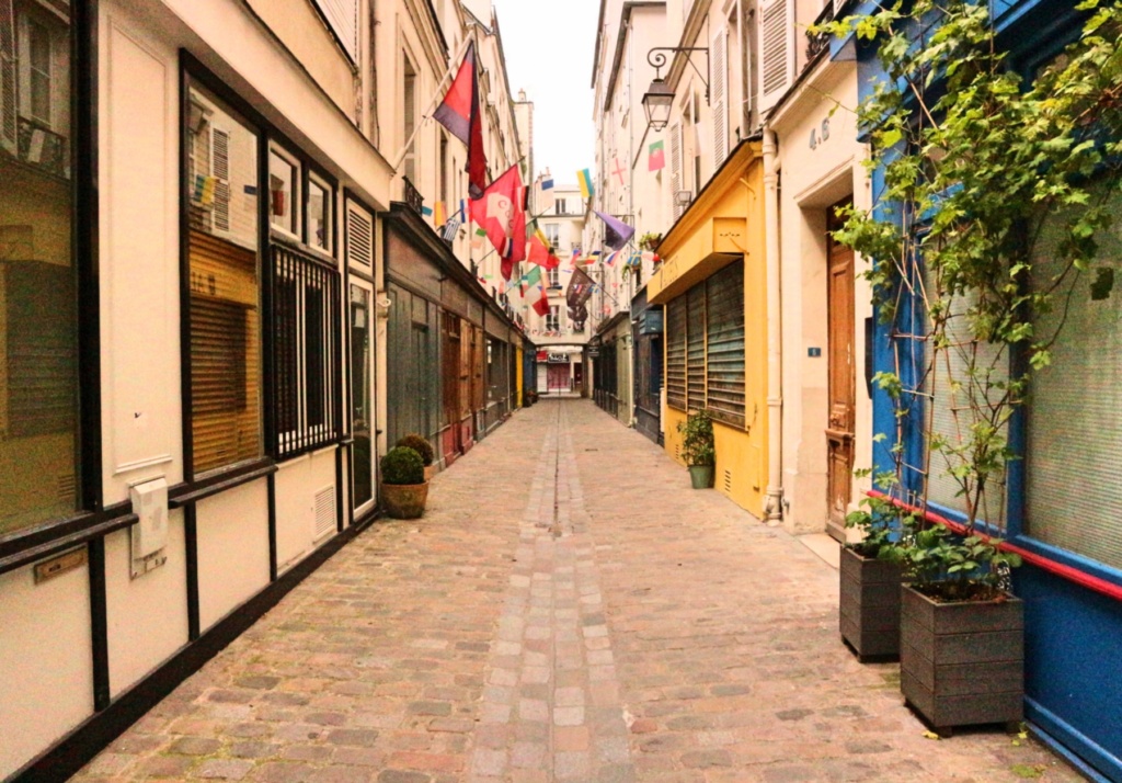 While it isn’t necessarily romantic in itself, the area around Villiers métro is home to the lovely market street rue Levis and the start of the excellent rue des Dames, a main street in the area. Hidden just off rue des Dames after rue de Levis is a charming pedestrian laneway hidden virtually in plain sight: le Passage Geffroy-Didelot. As you take an amble down, you’ll notice that the passageway hasn’t changed much since it opened in 1843. The north end is extra picturesque with its hanging flags, colorful shopfronts, art studios and cafés–another place which retails the village essence of Les Batignolles.