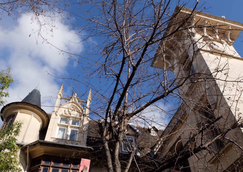One day crossing the Montmartre cemetery bridge I happened to notice on the other side of la cimitière what looked like a … castle tower. Hmmm… I had to go and investigate. Tracing what seemed to be the correct backstreets I managed to track it down and discovered this whimsical building’s story. The towered building I found at the end of the Impasse Marie Blanche is the neo-gothic mansion la Maison Eymonaud.