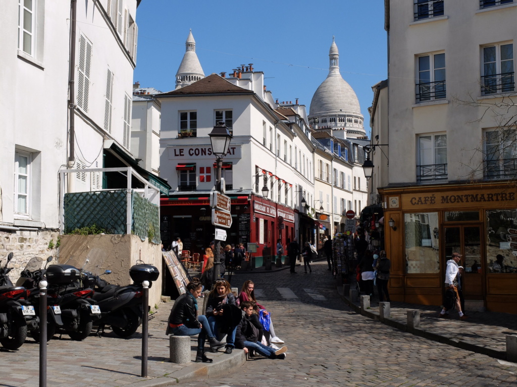 Ahhhh! Quintessential Paris! From corner of Rue Norvins and Rue Jean-Baptiste Clément you can have this picturesque view towards the rue Norvins and the dome of the basilica in the distance. You have to stand back at this position to be able to get the church in. The light is best on this side after lunch.