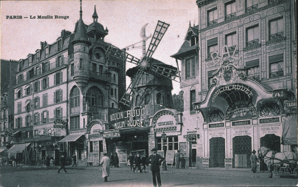 The Moulin Rouge is probably the most famous cabaret in the whole world. Opened in 1889 for the same world’s fair that brought Paris the Eiffel Tower, the Red Windmill has proved it has staying power. However, if we travel back a hundred years, we would see that the legendary cabaret was only one of myriad of nightlife venues of Pigalle and Montmartre. The area became an entertainment hub in the city with its annexation into the borders of Paris in 1860, in fact these venues popped up right on or fringing what had been the former Paris city limits, the Boulevard de Clichy and the BoulevardRochechouart. By the turn of the 20th century, this wide stretch was lined with over 60 cafés, cabarets and dance halls. Bearing names like The Fountain of Love, The Dead Rat and The Weapons of the Abbess (in reference to the former convent in Montmartre), most of these establishments have long since been demolished, however, a few are still around, in one form or another. Join us as we travel back to the Belle Epoque to experience the grand era of Parisian cabarets and see what’s happened to some of the best!