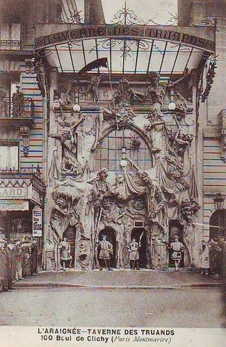 My absolute favorite of the Belle Epoque cabarets has to be the twin Le Ciel et L’Enfer, Heaven and Hell. Imagine choosing what ambiance you felt like on a give Saturday night in 1900: a little innocent fun in Heaven or an evening of naughtiness in Hell? Located at 53 Boulevard de Clichy, kitty-corner to the Moulin Rouge, the cabarets were opened in 1892 by Antonin Alexander, who upped the ante on the area’s nightlife scene. First time Passers-by of the era must certainly have been left with their mouths as gapping open as that of L’Enfer’s demon entrance. At night the doorman was dressed as a devil who ushered people inside to the slogan of “enter and be damned!”. Forget cancan girls, here the show’s program included “diabolic attractions,” “tormenting the damned,” and “the caldron”… all for the reasonable price of 1.25 francs, and you even got a souvenir to boot! Interestingly, L’Enfer became a hangout of the Surrealists, whose leader André Breton had a studio on the fourth floor of the cabaret’s building. Could the cabaret have inspired their unusual art? Sadly, the cabaret was demolished in the 1950s… to make way for a Monoprix supermarket, which has, on the other hand, stood the test of time.