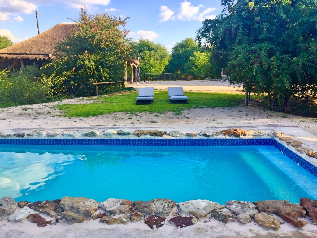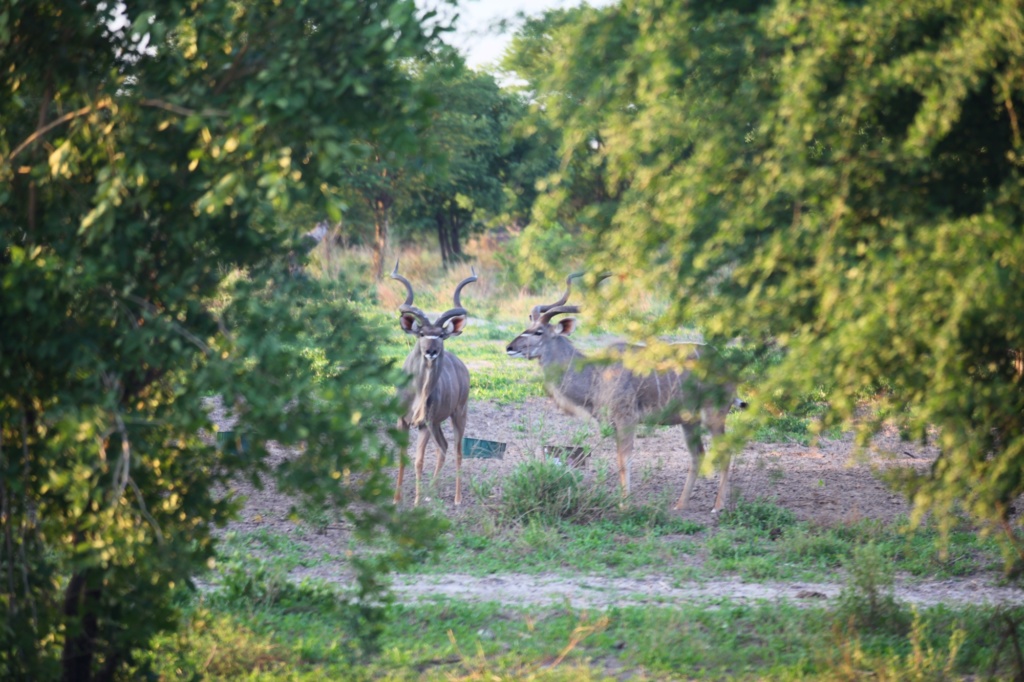We thoroughly enjoyed our excursion to Nxai, however, you can also see a whole range of wildlife right at Leopard Plains. The farm is home to eland, impala, kudu, blue wildebeest, zebras and even some giraffes. You can enjoy straight from your room, from the dining area or by taking a game drive or guided walk on the property. We did both and thought the walk was offered a great chance to understand the ecosystem of the area firsthand. We learnt about the medicinal plants, spied on some animals at the watering hole and even saw various sets of lion tracks… perhaps from the one who was roaring the night before? Sadly the lions which have snuck onto the property remained evasive during our stay, only to be spotted by Tim lounging next to the road two days later. I guess we’ll just have to come back again soon to see them for ourselves!