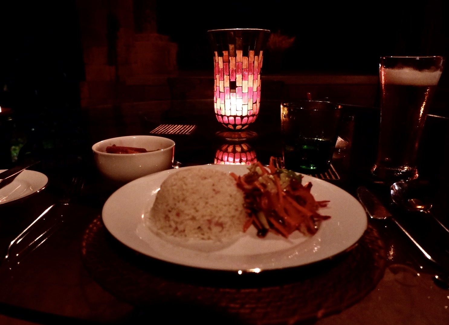 The hotel only has three rooms, each entirely different from the next. These are made of repurposed local building materials and are decorated with antiques, artwork and other curious finds. My room had its own mini temple behind which was an outdoor shower. This also provided an alluring backdrop for a private romantic candlelight dinner. On the other side of the cottage was a long water pool looking towards a historic Buddhist temple. This can be easily visited on foot, in addition to nearby rice fields and a local village with absolutely no other tourists in sight!