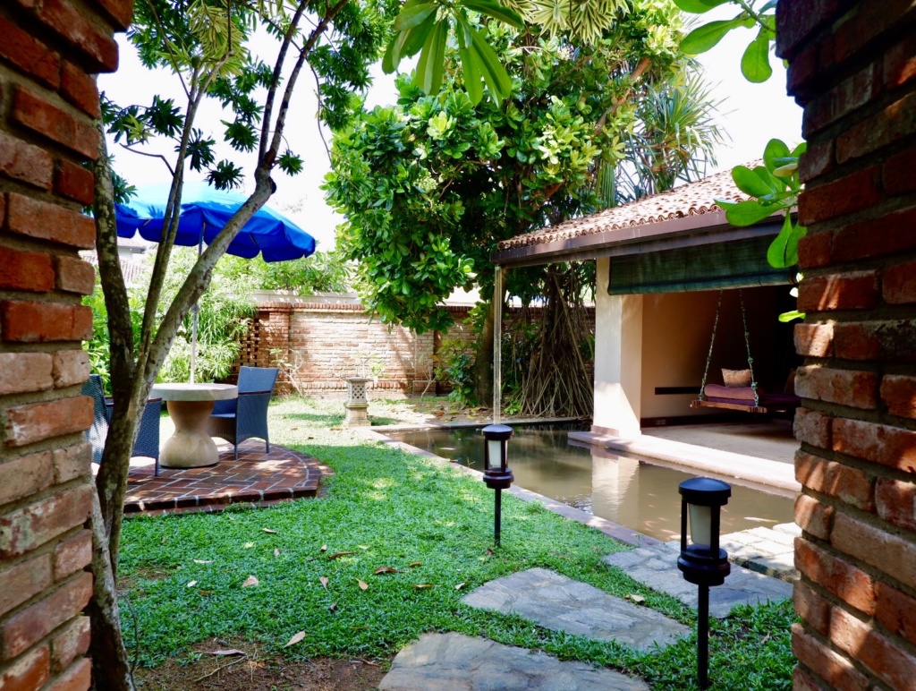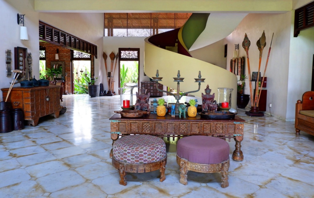 The unique boutique hotel was created by an English-Irish couple, architect Bernadette Barker and and interior designer Brendan O’Donnell, a project which they began in 2003. You can see Bernadette’s skills on the chic main building, the Plantation House, whose soaring ceilings, large windows and curved staircase provide a bright, airy and stylish feel. Here is where you will first encounter the hotel’s alluring decor, a stylish mix of antiques, art and curiosities carefully collected and arranged by Brendan. Many items were found in India including original “Campaign” antique pieces and beautifully crafted items used by members of the East India Company. The Plantation House has cozy sitting areas for guests to relax, a long dining table for special events and the villa’s spa.